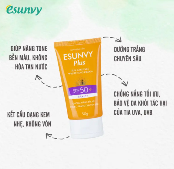 Esunvy Plus Sun care là thế hệ F1 của dòng kem chống nắng Esunvy Sun care. Chính vì thế, “em này” vừa thừa hưởng những ưu điểm của Esunvy Sun care, vừa được nâng cấp thêm khả năng dưỡng trắng chuyên sâu.