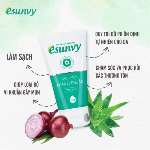3. Sữa rửa mặt ngừa mụn Esunvy 150g sản phẩm làm sạch sâu siêu mềm mịn làn da nhờ chiết xuất dược liệu thiên nhiên quý kết hợp hoạt chất thế hệ mới trong Sữa rửa mặt Esunvy giúp da sạch sâu nhưng vẫn nhẹ nhàng, êm dịu mềm da.