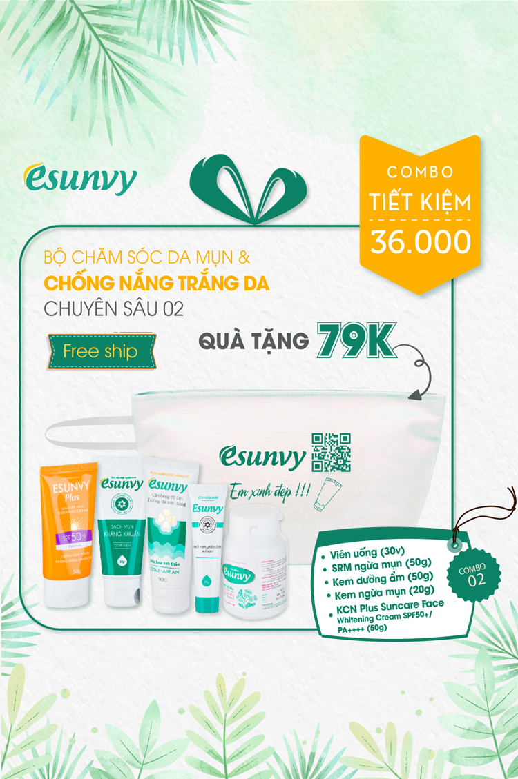 2. TPBVSK Esunvy giúp hỗ trợ thanh nhiệt giải độc, hỗ trợ tăng cường chức năng gan. Hỗ trợ hạn chế thâm nám da, hỗ trợ giảm bã nhờn, hỗ trợ giảm mụn. Hỗ trợ phục hồi vùng da bị tổn thương do mụn.
