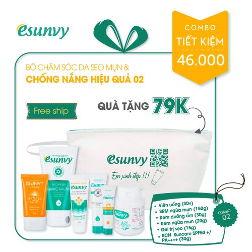 Sự kết hợp đặc biệt lần đầu của 6 sản phẩm mang lại giải pháp chăm sóc da cho các vấn đề: mụn, sẹo hiệu quả nổi bật với sự góp mặt của kem chống nắng dưỡng da cùng gel tri seo Esunvy & bộ chăm sóc da mụn cơ bản. Đặc biệt, tiết kiệm đến 114.000 vnđ và gấp 3 lần dung tích sữa rửa mặt.